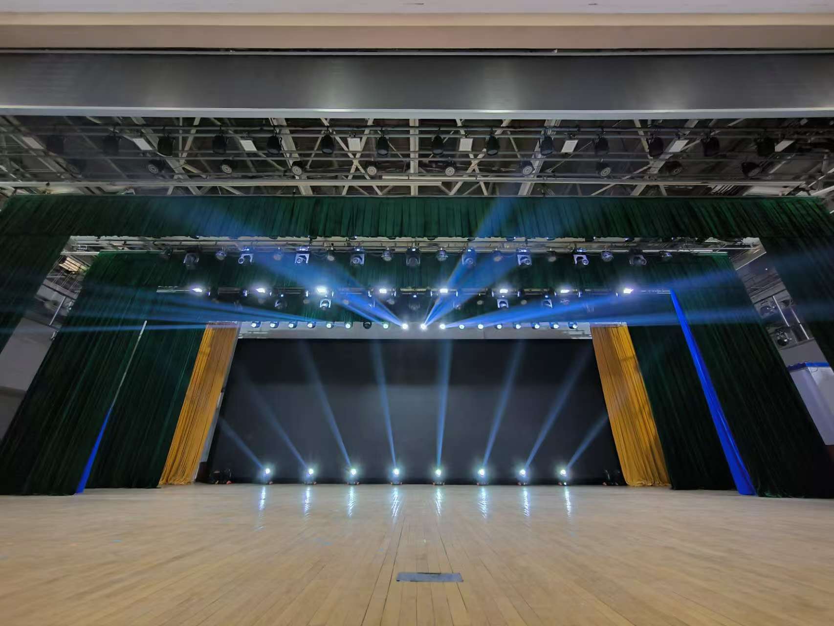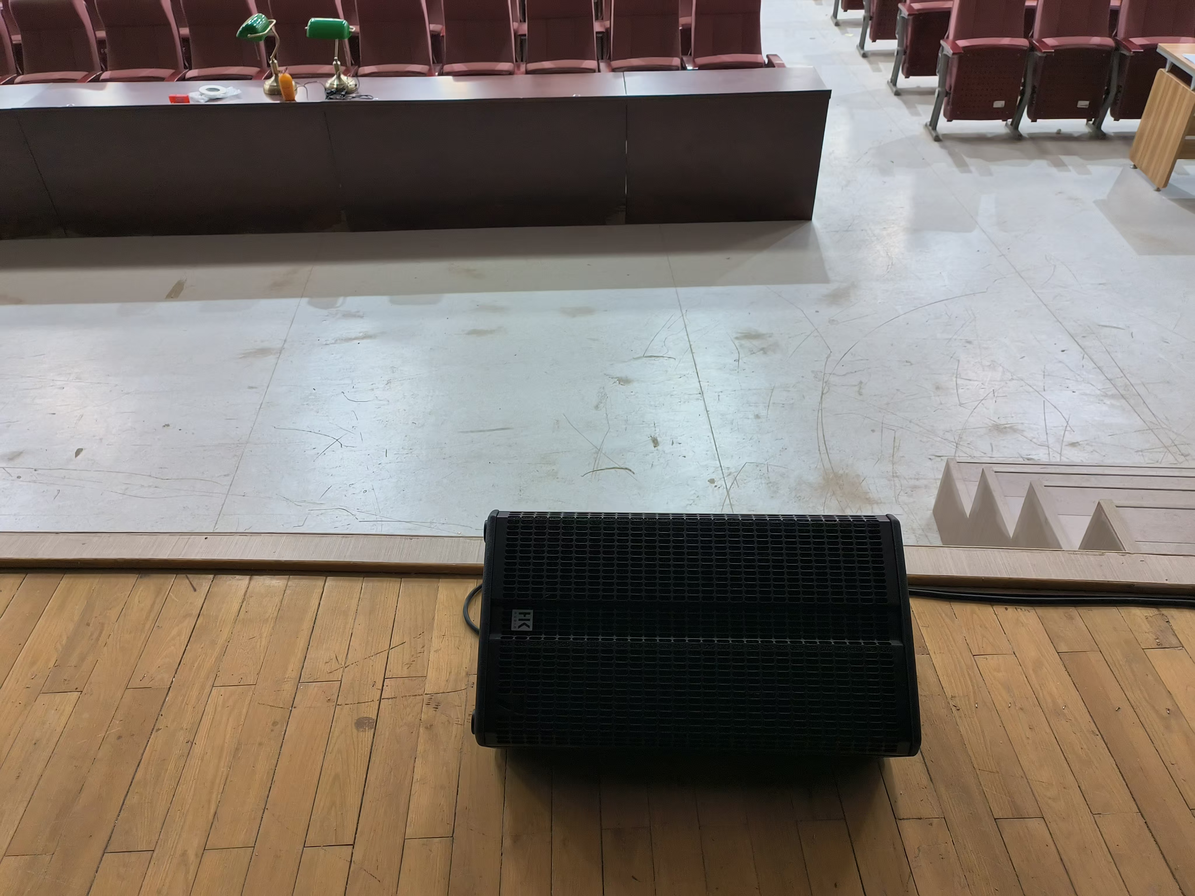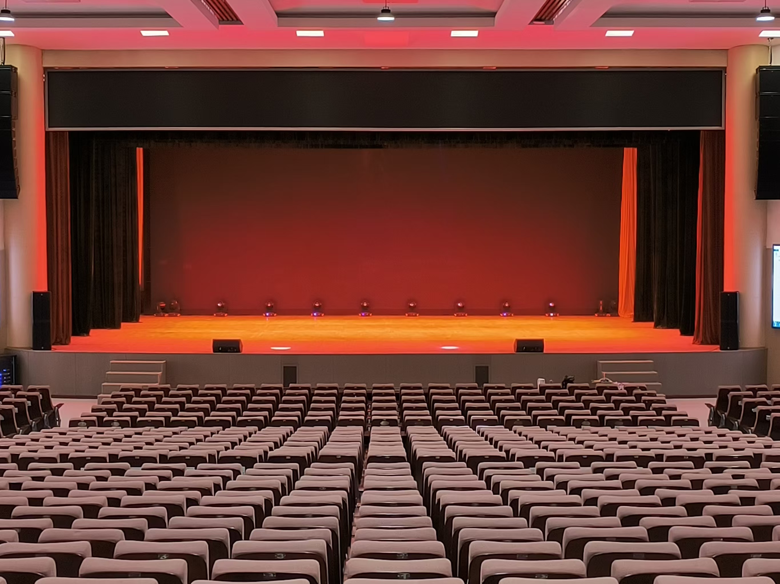德国hkaudio公司的sonar 系列的110xi作为台唇补声全频扬声器,均匀分布于舞台口台唇下沿。舞台内使用了2只linear 5 112 x作为舞台流动返送全频扬声器,另外2只linear7系列的112xa作为舞台固定返送全频扬声器摆放于侧台口两侧。