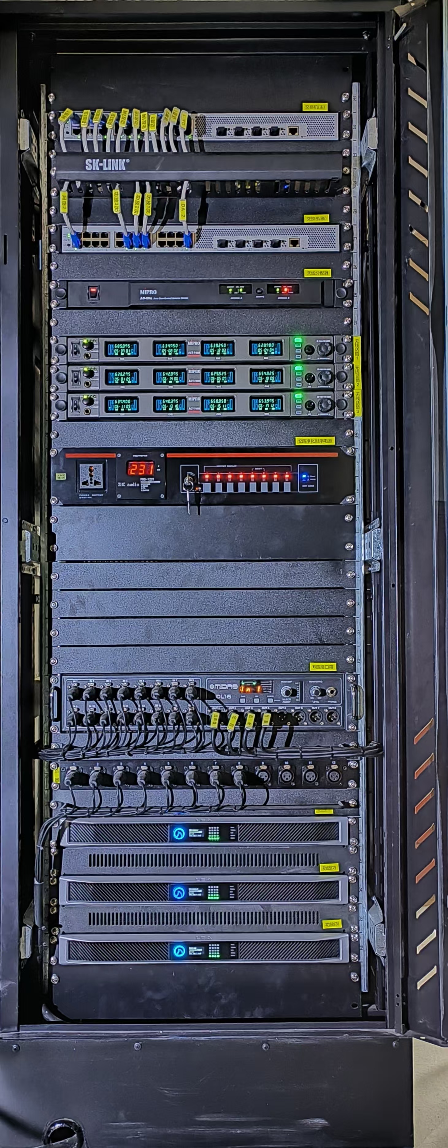宪梓堂学生活动中心中,搭配美国lea professional公司的dante connect系列数字功放以其出色的音质和稳定性,为各类活动提供了强有力的支持。无论是学校的大型会议、音乐会、演讲比赛,还是各类文艺演出都能为观众带来清晰、逼真的声音效果。cadis系列线阵其独特的声音处理技术,使得声音在体艺馆内均匀分布,每个角落的观众都能享受到最佳的听觉体验。